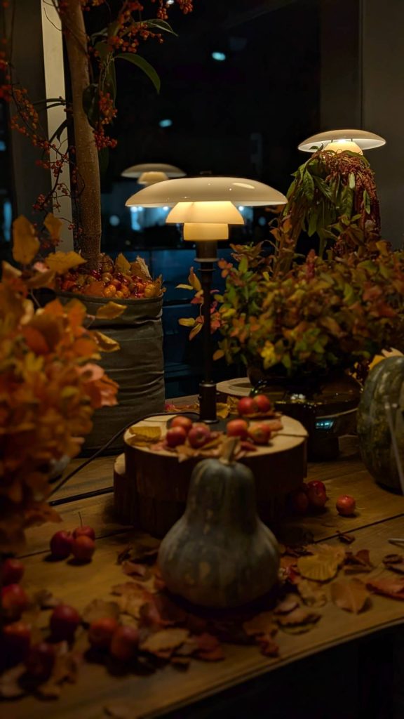 ルイスポールセンの柔らかな光が、ニコライ・バーグマンの花々を包み込み、